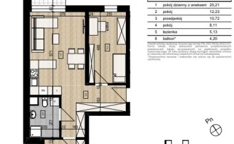 Mieszkanie 3 pokojowe o powierzchni 56,3m2, na 1 piętrze nowo powstałego budynku.