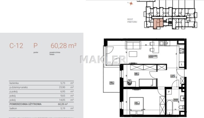 Przedstawiamy 3 pokojowe mieszkanie o powierzchni 59,94m2 na parterze w bloku z cichą windą i balkonem.