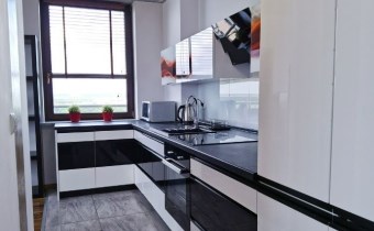 - przestronny salon z wyjściem na balkon i widokiem na panoramę miasta