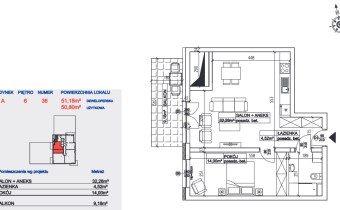 Przedstawiamy 2 pokojowe mieszkanie o powierzchni 50m2 na 6 piętrze bloku z cichą windą.