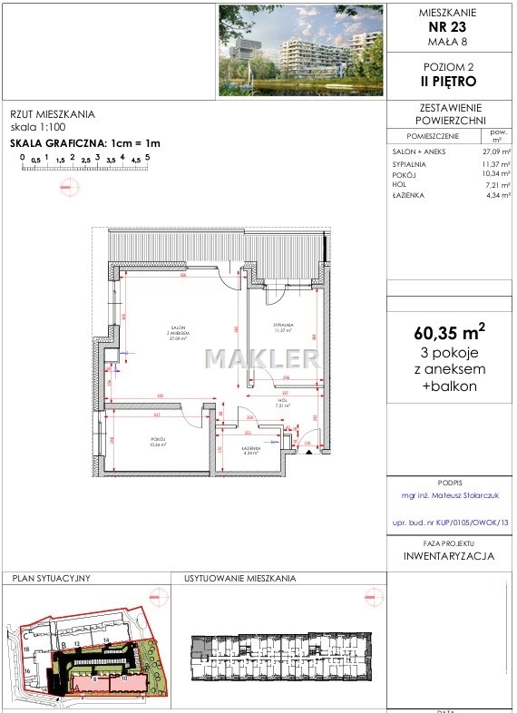 3 pokoje 60,56 m2 11 900,00 zł/m2