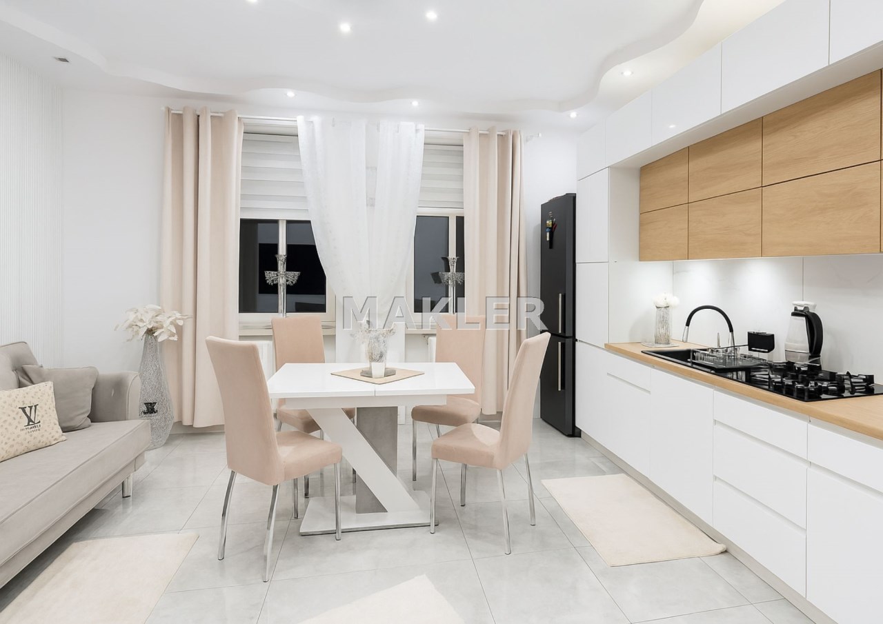 Mieszkanie przeszło gruntowny remont z dbałością o każdy detal – wykończone w nowoczesnym, eleganckim stylu, przy użyciu materiałów wysokiej jakości.