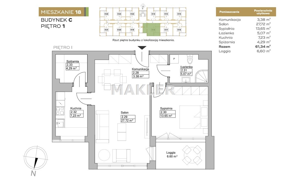 Powierzchnia użytkowa 61,34 m²
