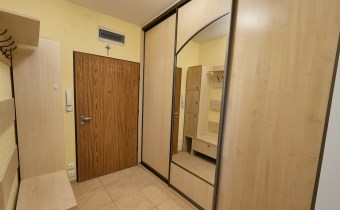 Zabudowana przestrzeń z szafami – idealna do przechowywania i utrzymania porządku.