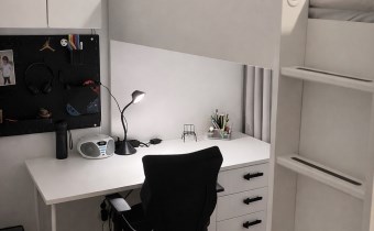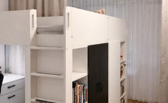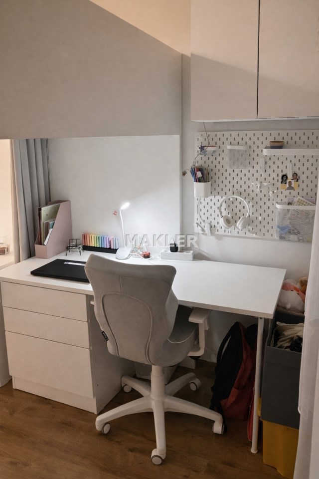Pokój dziecięcy został funkcjonalnie podzielony na dwie strefy. W łazience zaprojektowano wnękę na pralkę (niewidoczną na rzucie). W korytarzu znajduje się miejsce na dużą szafę w zabudowie.