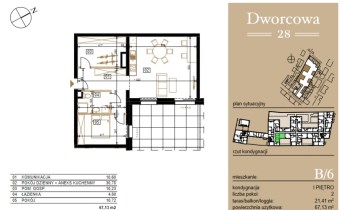 Przedstawiamy 2 pokojowe mieszkanie o powierzchni 67,13 m2 na 1 piętrze w bloku z cichą windą i dużym tarasem w samym centrum miasta Bydgoszczy.