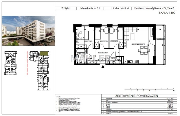 Powierzchnia użytkowa 72,85 m²
