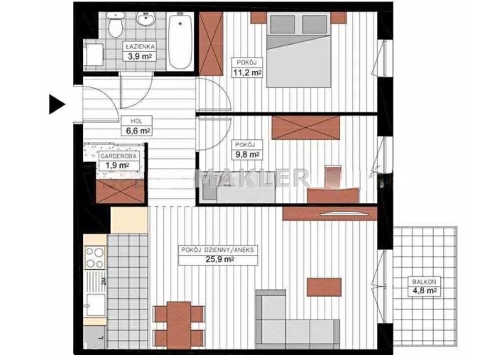 czynsz dla 3 osób: ok. 680 zł (po rozliczeniu ogrzewania)