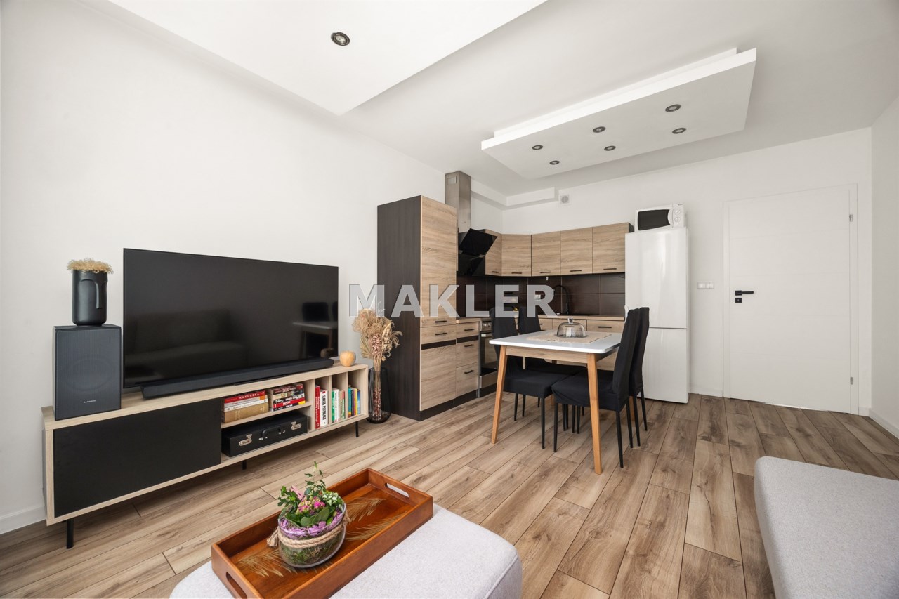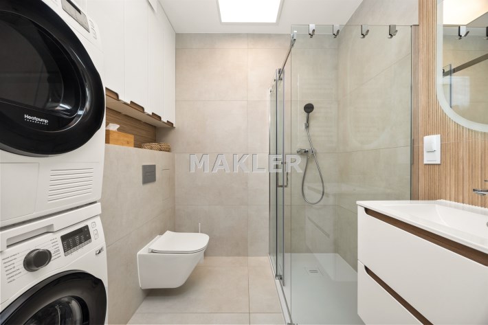 wnętrze jest czyste, nowoczesne i spójne. Neutralna kolorystyka, jasne ściany, spójna podłoga i estetyczna łazienka z prysznicem – bez potrzeby ponoszenia dodatkowych kosztów po zakupie.
