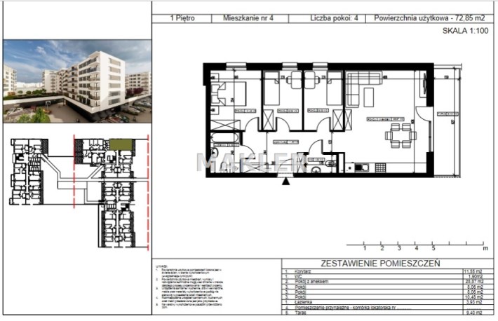 3 pokoje 60,56 m2 11 900,00 zł/m2