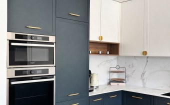 Kuchnia została wykonana w nowoczesnej zabudowie i wyposażona w niezbędny sprzęt AGD. Sypialnia zapewnia komfort oraz dużą ilość miejsca do przechowywania, a przedpokój został wyposażony w pojemną szafę w zabudowie, która ułatwia utrzymanie porządku.