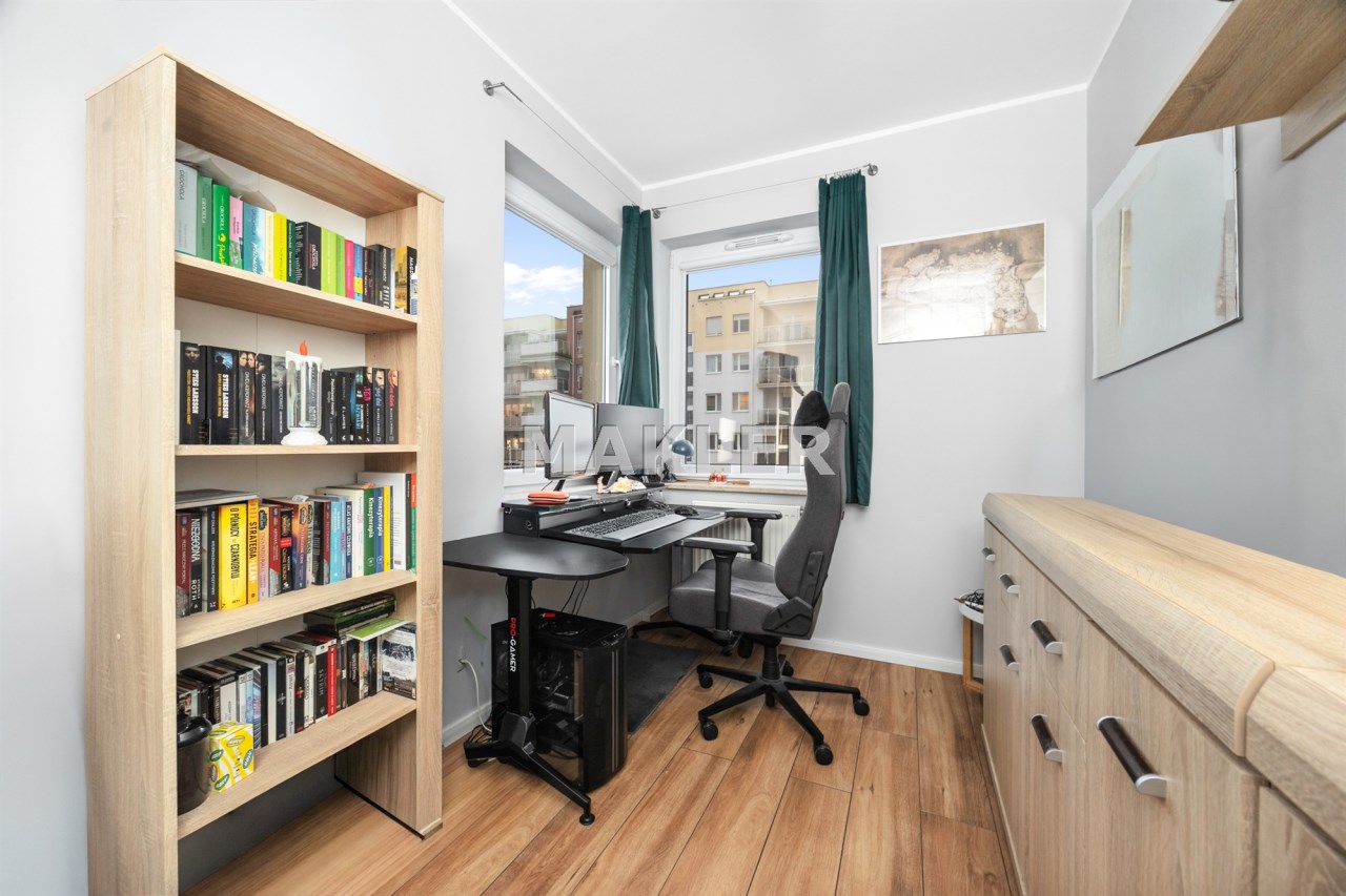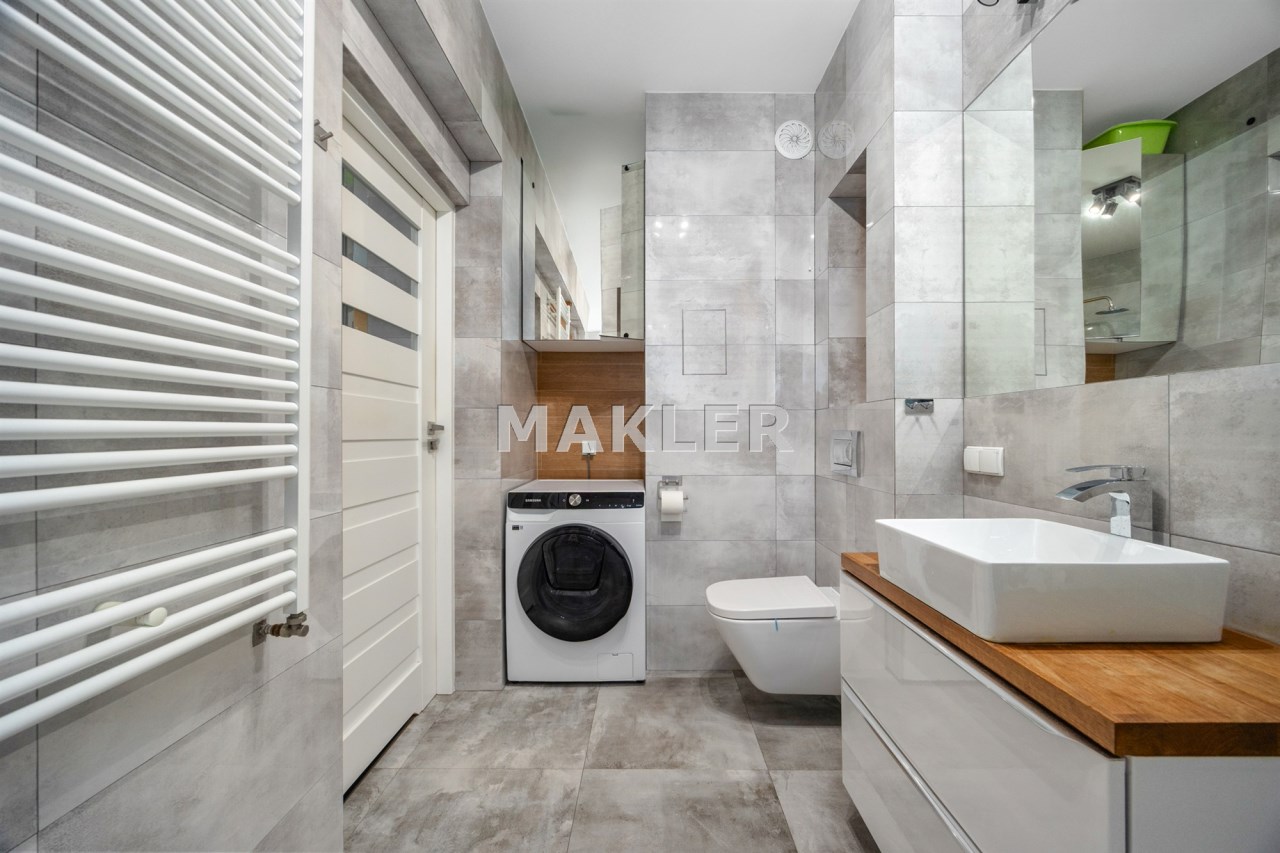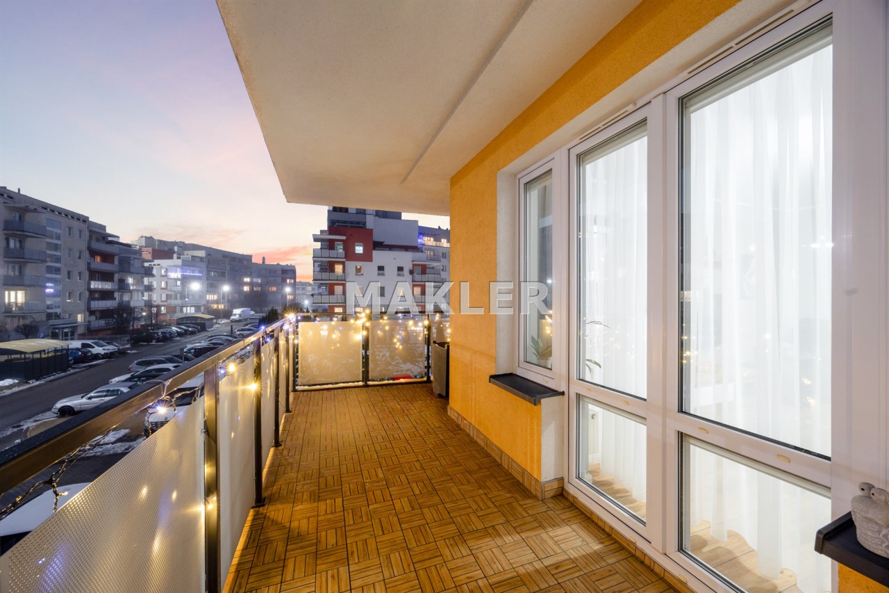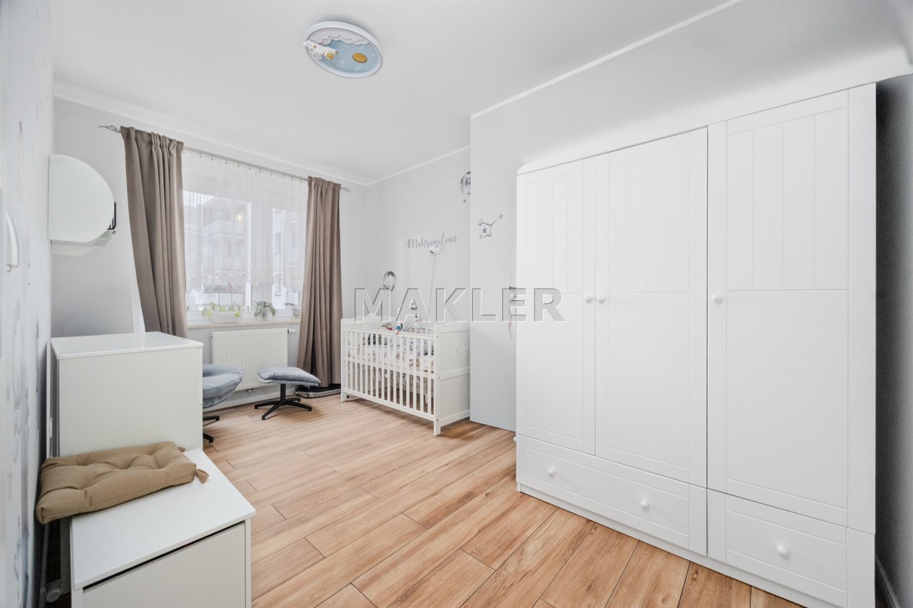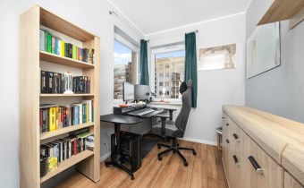Osiedle jest zamknięte, monitorowane i bardzo dobrze utrzymane. Dodatkowym atutem jest nowoczesny plac zabaw dla dzieci. Jeśli masz małe dziecko, to ogromna wygoda – bezpieczna przestrzeń do zabawy znajduje się tuż pod domem.