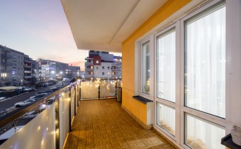 Mieszkanie posiada taras od strony wewnętrznej osiedla, co zapewnia ciszę, prywatność i komfortowy wypoczynek bez hałasu ulicznego.