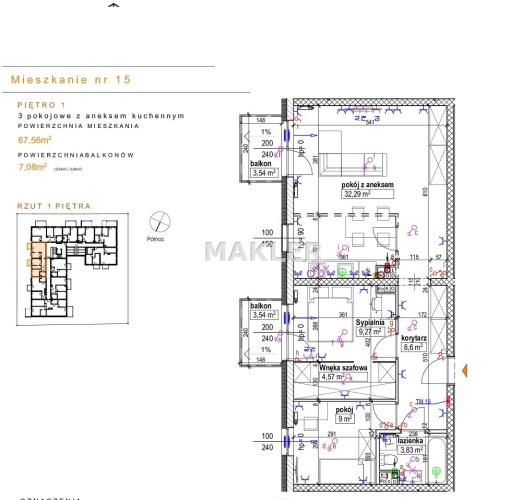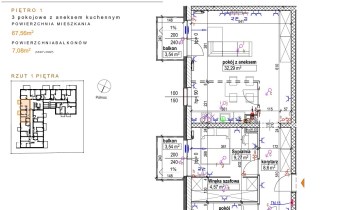 Przedstawiamy 3 pokojowe mieszkanie o powierzchni 69,65 m2 na 1 piętrze w nowym bloku z windą i balkonem.