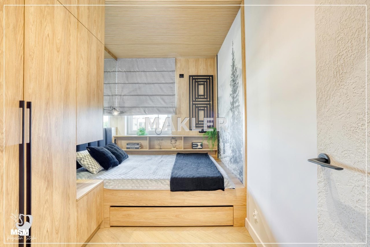 To wygodna przestrzeń, pozwalająca na swobodę podczas każdego dnia. Oferta wygrywa pośród innych ze względu na to, że bardzo często ten sam rozkład pomieszczeń jest uwzględniany na mniejszych metrażach. Tu nie musisz się martwić o to, że sypialnie są ciasne a Ty nie będziesz miał miejsca na pojemne zabudowy. Właściciel zadbał o to aby w całym mieszkaniu nie zabrakło miejsca do przechowywania. Wszystkie zabudowy zostały zaprojektowane na wymiar. Mieszkanie jest