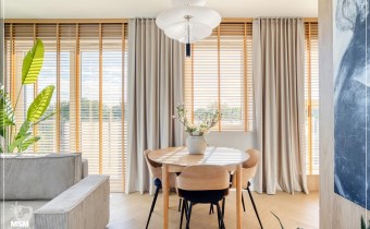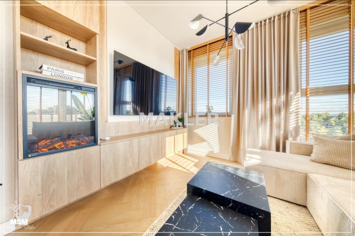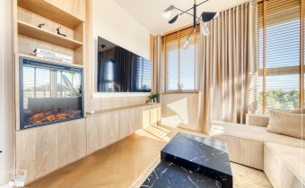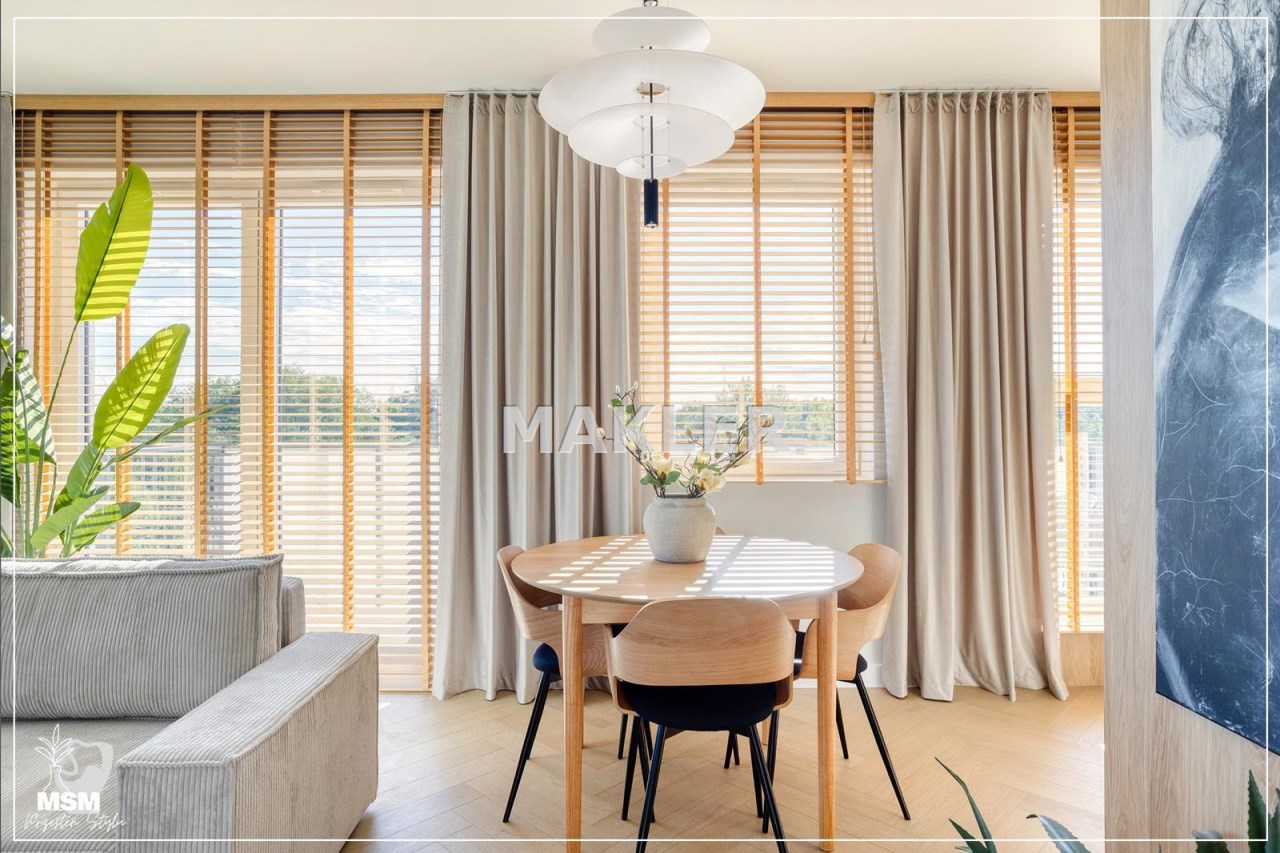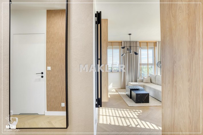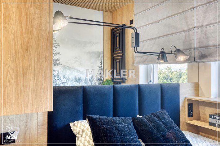 Wnętrze jest jasne i dobrze doświetlone naturalnym światłem. Wyposażenie wysokiej jakości począwszy od podłóg, oświetlenia, przez stolarkę drzwiową aż po zabudowy i wyposażenie.