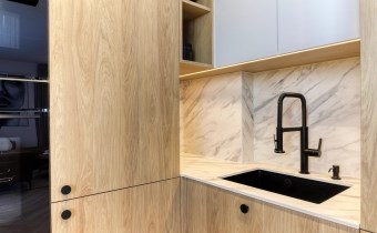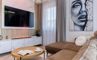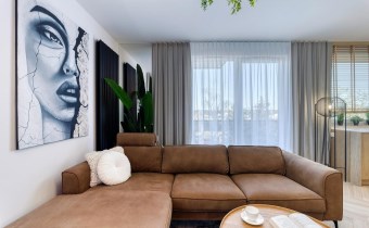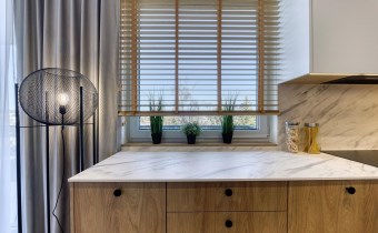 - salon z aneksem kuchennym i balkonem