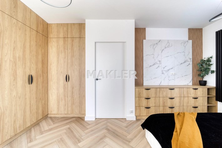 To wygodna przestrzeń, pozwalająca na swobodę podczas każdego dnia. Oferta wygrywa pośród innych ze względu na to, że bardzo często ten sam rozkład pomieszczeń jest uwzględniany na mniejszych metrażach. Tu nie musisz się martwić o to, że sypialnie są ciasne a Ty nie będziesz miał miejsca na pojemne zabudowy. Właściciel zadbał o to aby w całym mieszkaniu nie zabrakło miejsca do przechowywania. Wszystkie zabudowy zostały zaprojektowane na wymiar. Mieszkanie jest