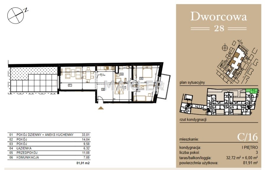 3 pokoje 60,64 m2 10 029,68 zł/m2