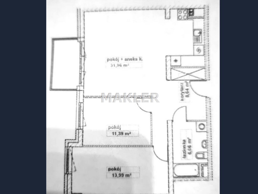 Wnętrze zostało zaprojektowane z myślą o wygodzie i harmonii przestrzeni. Salon z aneksem kuchennym stanowi serce mieszkania — to idealne miejsce zarówno do wspólnego gotowania, jak i codziennego relaksu. Z salonu prowadzi wyjście na balkon, który doskonale sprawdzi się na poranną kawę lub spokojny wieczór po pracy.