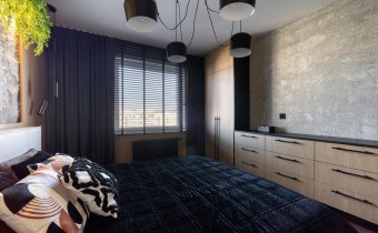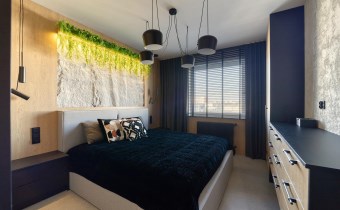 Wyposażona w łóżko typu king size (180 cm) z pojemnikiem i wysokiej klasy materacem, pojemne szafy oraz komodę wykonaną na zamówienie.