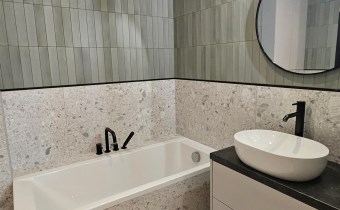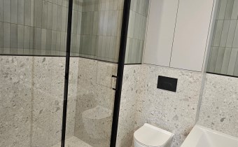 - Łazienka z nowoczesnym designem i wysokiej jakości płytkami, z wanną i prysznicem 5,85m2