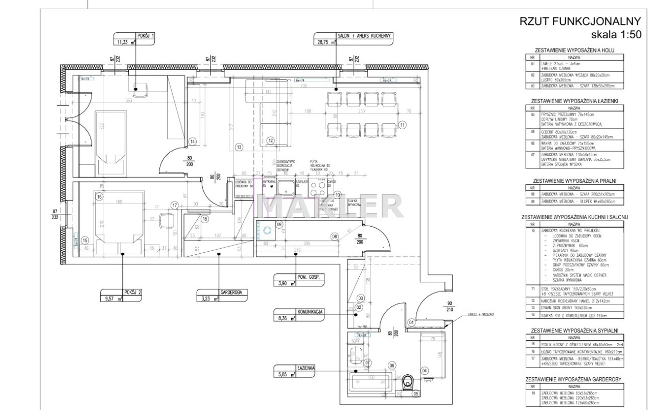 - 2 sypialnie: 9,57m2 i 11,33m2