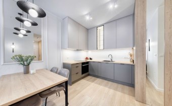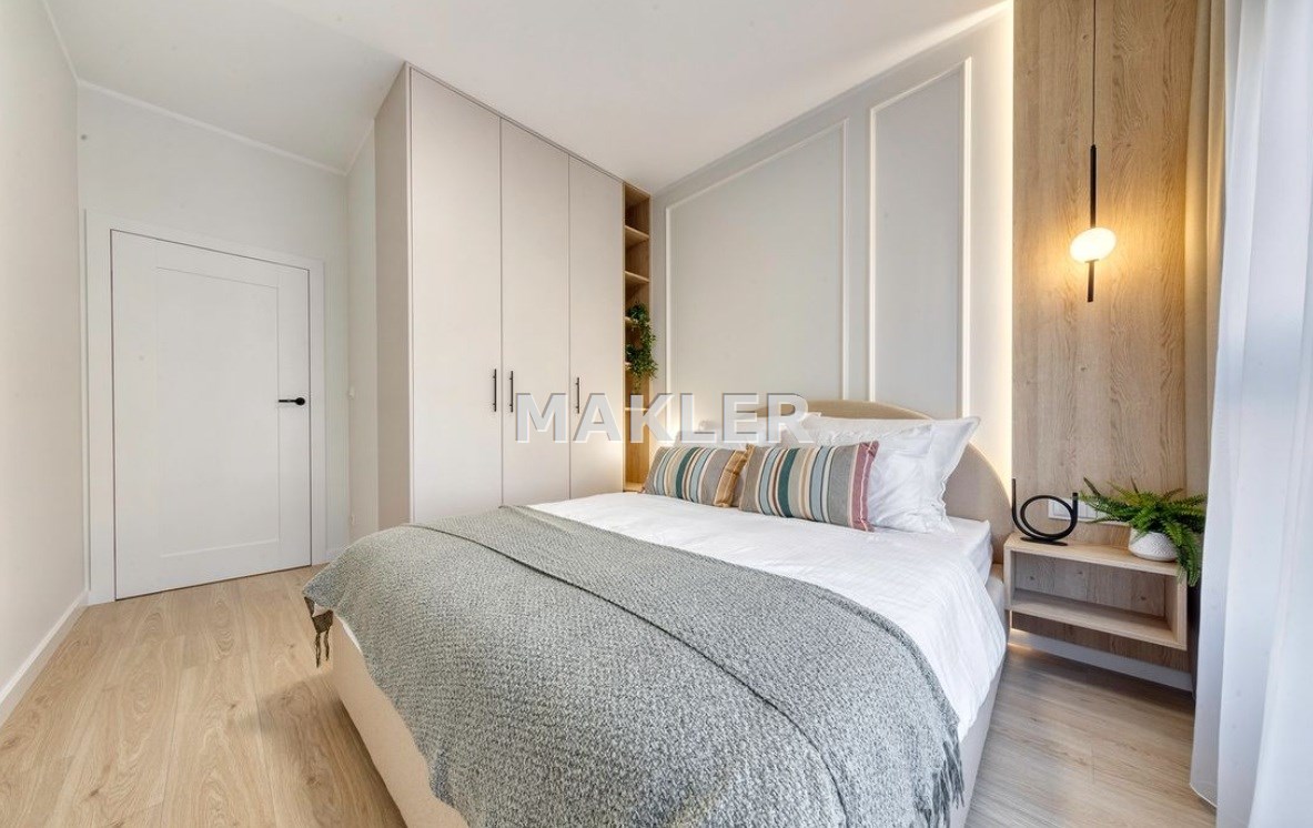 Mieszkanie zostało wykończone w wysokim standardzie, z użyciem materiałów premium i nowoczesnych rozwiązań technologicznych. Jest w pełni umeblowane i wyposażone, dzięki czemu kupujący nie ponosi żadnych dodatkowych kosztów. Na wyposażeniu znajdują się m.in.: