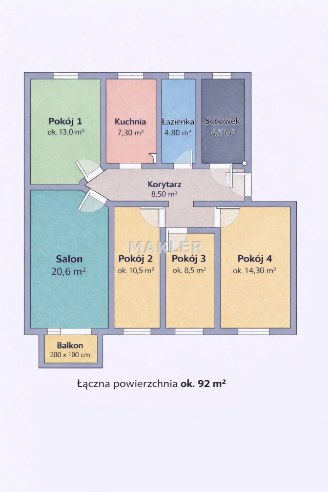 Układ mieszkania został zoptymalizowany pod wynajem pokoi – każdy pokój jest niezależny, co znacząco zwiększa potencjał inwestycyjny.