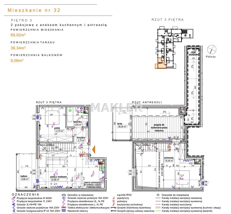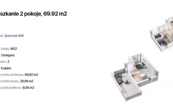 Przedstawiamy 2 pokojowe mieszkanie z antresolą o łącznej powierzchni 69,92m2 na 3 piętrze w nowym bloku z windą.
