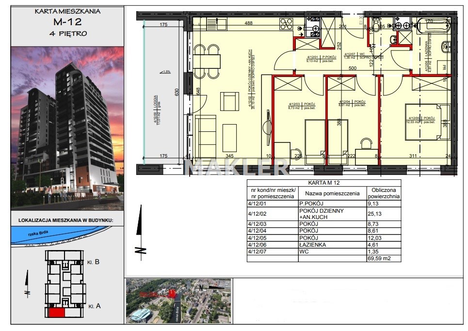Prestiżowa lokalizacja, nowoczesny, dobrze wyposażony budynek stał już się nowym symbolem Bydgoszczy, który zdefiniował pojęcie luksusu, zapewni sukces i odzwierciedli aspiracje mieszkańców. Przepiękne otoczenie rzeki gwarantuje bliskość terenów spacerowych. Z drugiej strony - mimo, że wśród zieleni, nadal jesteśmy w samym centrum miasta. Blisko stąd do centrów handlowych Focus Mall i ważnych węzłów komunikacyjnych. Obok znajduje się rondo Toruńskie, trasa Uniwersytecka, dworzec PKS, przystanki tramwajowe i autobusowe, hala sportowo widowiskowa „Łuczniczka” gdzie organizowane są różne imprezy, oraz słynne lodowisko TORBYD. Do ścisłego centrum jest stąd zaledwie kilka minut spacerem. W pobliżu inwestycji znajdują się restauracje oraz hotele, obiekty sportowe i kulturalne, szkoły i kina. Okolica zapewnia bezpośredni dostęp do niezwykłych miejsc takich jak muzea czy filharmonia. Charakterystyka okolicznej zabudowy jest gwarantem, że w bezpośrednim sąsiedztwie nie powstanie już inny podobny budynek, co z kolei gwarantować będzie niezwykłe widoki na panoramę miasta.