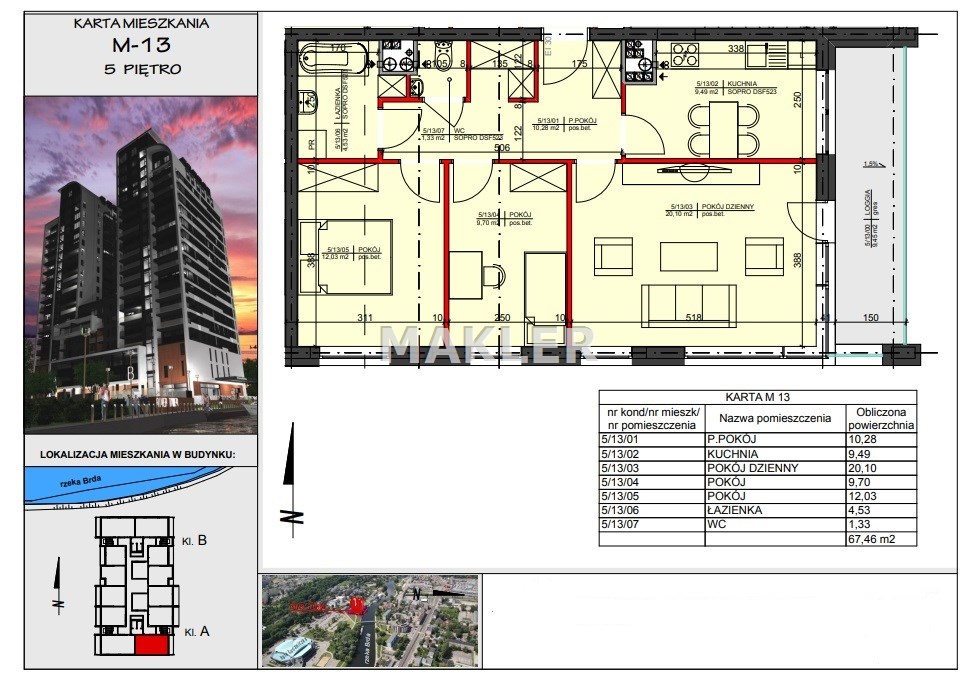 Prestiżowa lokalizacja, nowoczesny, dobrze wyposażony budynek stał już się nowym symbolem Bydgoszczy, który zdefiniował pojęcie luksusu, zapewni sukces i odzwierciedli aspiracje mieszkańców. Przepiękne otoczenie rzeki gwarantuje bliskość terenów spacerowych. Z drugiej strony - mimo, że wśród zieleni, nadal jesteśmy w samym centrum miasta. Blisko stąd do centrów handlowych Focus Mall i ważnych węzłów komunikacyjnych. Obok znajduje się rondo Toruńskie, trasa Uniwersytecka, dworzec PKS, przystanki tramwajowe i autobusowe, hala sportowo widowiskowa „Łuczniczka” gdzie organizowane są różne imprezy, oraz słynne lodowisko TORBYD. Do ścisłego centrum jest stąd zaledwie kilka minut spacerem. W pobliżu inwestycji znajdują się restauracje oraz hotele, obiekty sportowe i kulturalne, szkoły i kina. Okolica zapewnia bezpośredni dostęp do niezwykłych miejsc takich jak muzea czy filharmonia. Charakterystyka okolicznej zabudowy jest gwarantem, że w bezpośrednim sąsiedztwie nie powstanie już inny podobny budynek, co z kolei gwarantować będzie niezwykłe widoki na panoramę miasta.