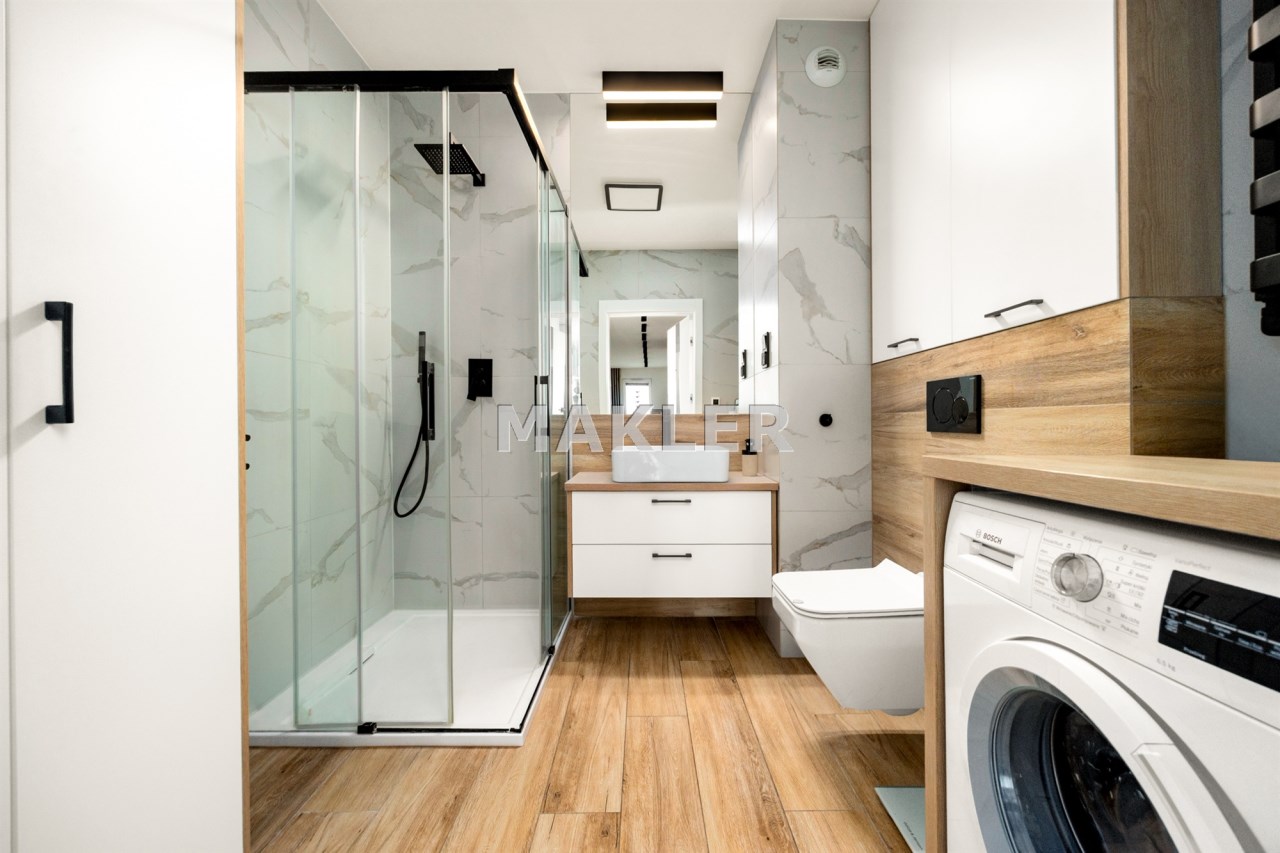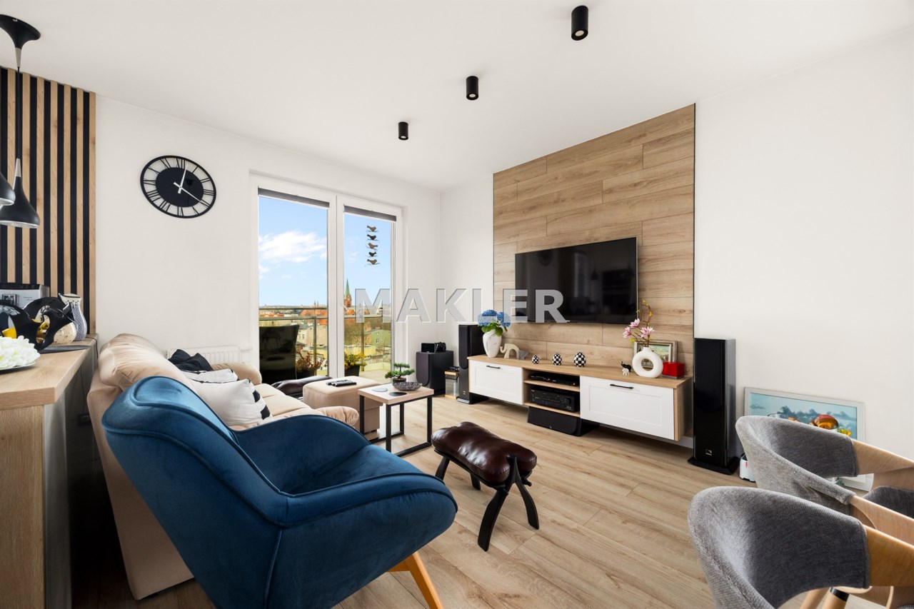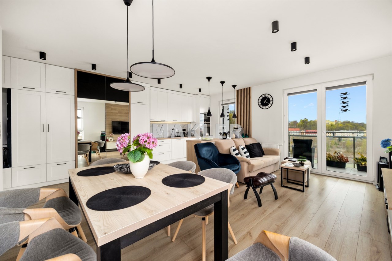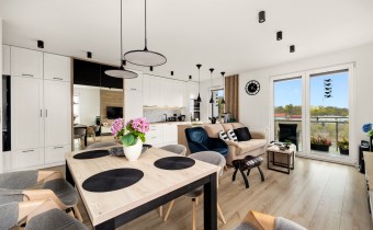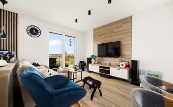 Sam apartament mieści się na 6. piętrze nowoczesnego budynku i oferuje wyjątkowe połączenie designu, funkcjonalności oraz świetnej lokalizacji. 65 m² zostało zaprojektowane tak, aby maksymalnie wykorzystać każdy metr i zapewnić wygodę domownikom na co dzień.