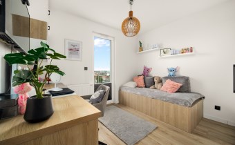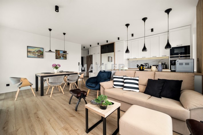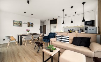 Sam apartament mieści się na 6. piętrze nowoczesnego budynku i oferuje wyjątkowe połączenie designu, funkcjonalności oraz świetnej lokalizacji. 65 m² zostało zaprojektowane tak, aby maksymalnie wykorzystać każdy metr i zapewnić wygodę domownikom na co dzień.