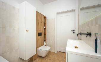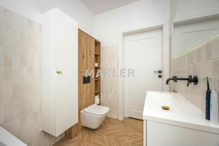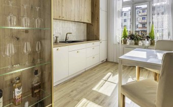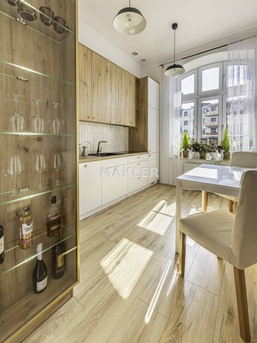 - W pełni umeblowane w wysokim standardzie: fornirowane meble od stolarza