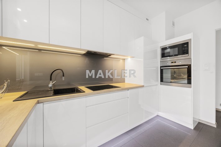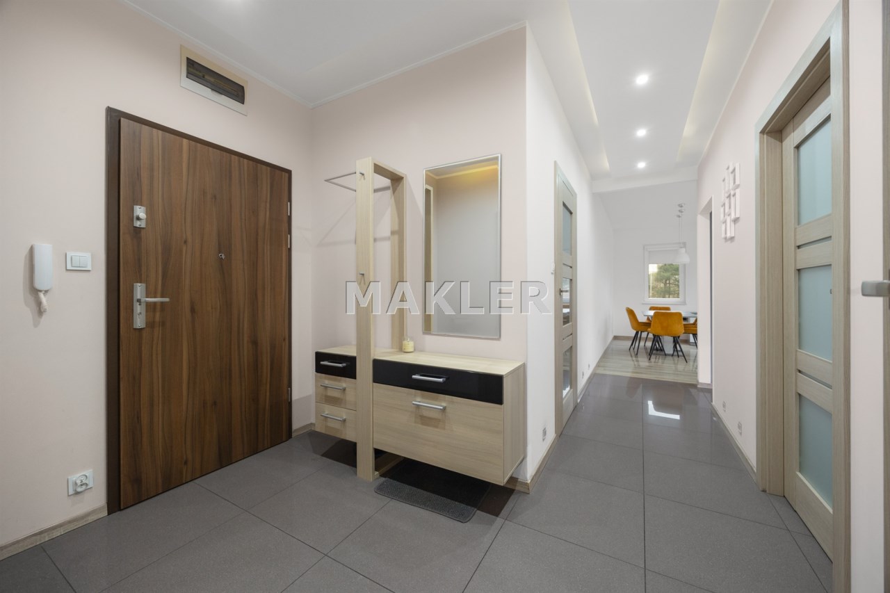 Mieszkanie zostało urządzone z wyjątkowym wyczuciem stylu – wysoki standard wykończenia, materiały najwyższej jakości i spójna kolorystyka tworzą eleganckie, ponadczasowe wnętrze.