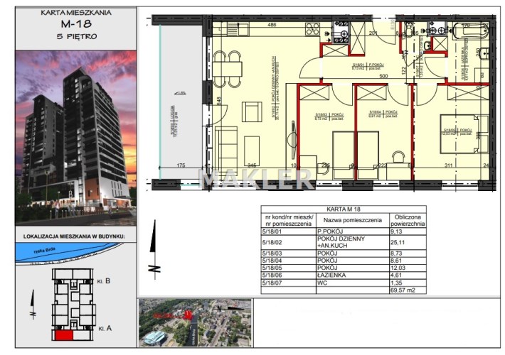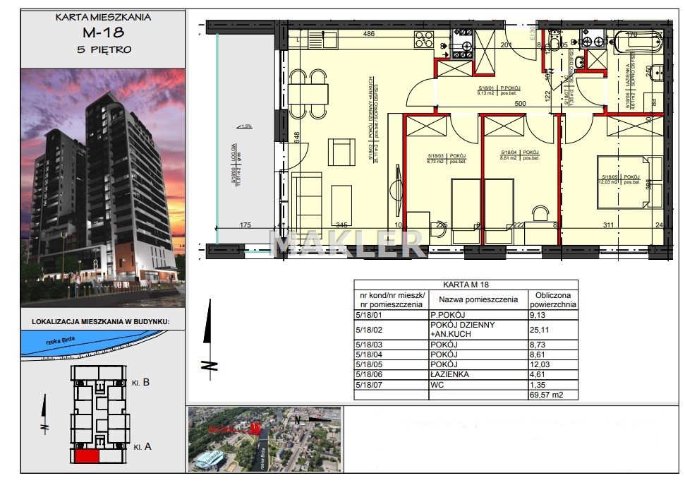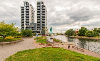 Prestiżowa lokalizacja, nowoczesny, dobrze wyposażony budynek stał już się nowym symbolem Bydgoszczy, który zdefiniował pojęcie luksusu, zapewni sukces i odzwierciedli aspiracje mieszkańców. Przepiękne otoczenie rzeki gwarantuje bliskość terenów spacerowych. Z drugiej strony - mimo, że wśród zieleni, nadal jesteśmy w samym centrum miasta. Blisko stąd do centrów handlowych Focus Mall i ważnych węzłów komunikacyjnych. Obok znajduje się rondo Toruńskie, trasa Uniwersytecka, dworzec PKS, przystanki tramwajowe i autobusowe, hala sportowo widowiskowa „Łuczniczka” gdzie organizowane są różne imprezy, oraz słynne lodowisko TORBYD. Do ścisłego centrum jest stąd zaledwie kilka minut spacerem. W pobliżu inwestycji znajdują się restauracje oraz hotele, obiekty sportowe i kulturalne, szkoły i kina. Okolica zapewnia bezpośredni dostęp do niezwykłych miejsc takich jak muzea czy filharmonia. Charakterystyka okolicznej zabudowy jest gwarantem, że w bezpośrednim sąsiedztwie nie powstanie już inny podobny budynek, co z kolei gwarantować będzie niezwykłe widoki na panoramę miasta.