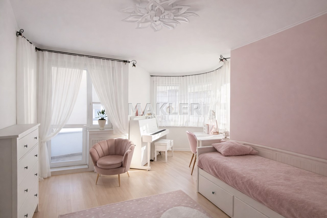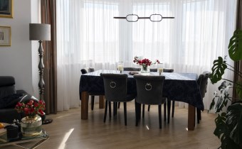 Mieszkanie zostało wyposażone w wysokiej jakości zabudowy wykonane na zamówienie przez stolarza, co zapewnia dużą funkcjonalność oraz estetykę wnętrz. Układ pomieszczeń jest bardzo praktyczny i wygodny do codziennego życia zarówno dla rodziny, jak i osób pracujących z domu.