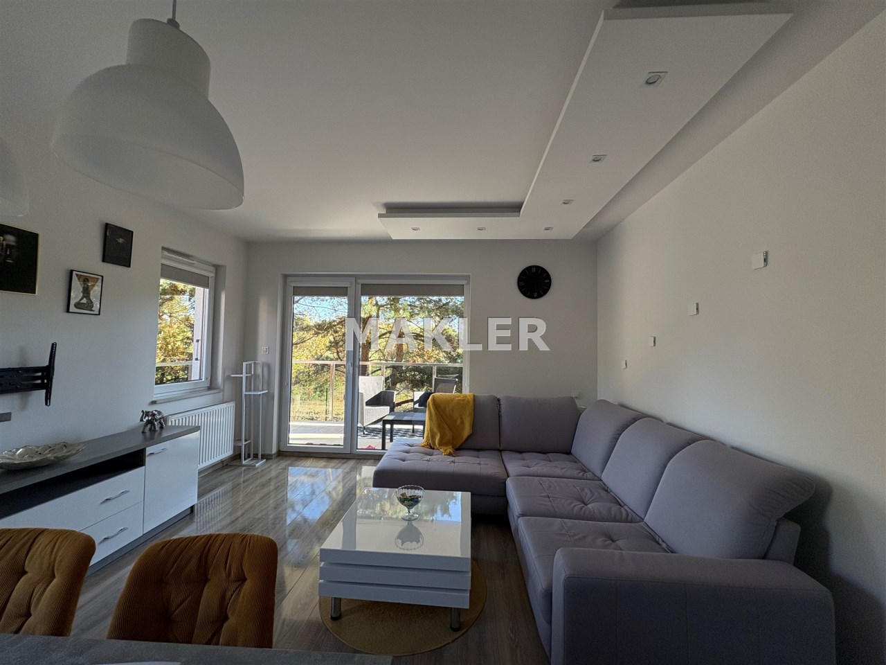 - przestronny salon z wyjściem na 13-metrowy taras, który zaprasza do porannej kawy w promieniach słońca pośród drzew,