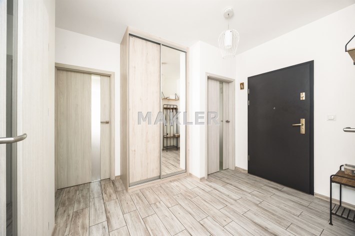 Przedpokój oferuje przestrzeń z zabudową Komandor, co pozwala na zachowanie estetyki i porządku.