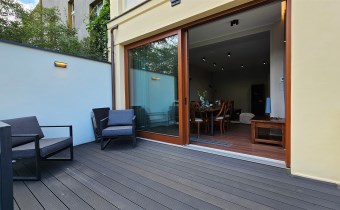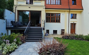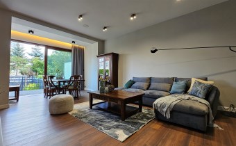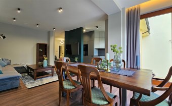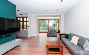Dużym walorem tego mieszkania jest przylegający do salonu duży taras i pięknie zagospodarowany ogród.